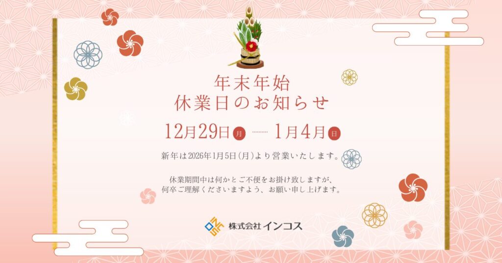 弊社の年末年始の休業期間についてお知らせ致します。